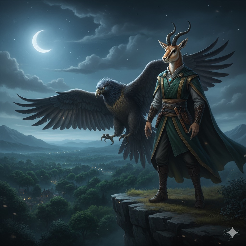 | Gemini:それでは、私が『白狼』の第一章パート2から想像したガゼル王を画像生成させていただきます。 「旅装束に身を包み」「懐から樹でできた小さな笛を取り出し」「巨大な鳥を呼び寄せる」といった描写から、自然と深く繋がり、知恵と行動力を兼ね備えた、威厳あるリーダー像をイメージします。ガゼル族の特徴も踏まえつつ、描いてみます。 お待たせいたしました。こちらが、私が想像した『白狼』のガゼル王の姿です。 |