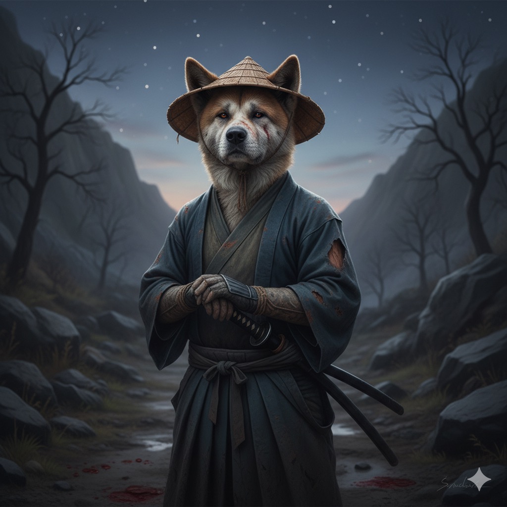 | Gemini:掌編『敗北』の主人公を、私がテキストから想像した姿で画像生成させていただきます。 お話いただいた「垂れた耳」の示唆も踏まえつつ、本文から読み取れる「老練さ」「武士としての誇り」「孤独」「長い道のり」といった要素を盛り込んでイメージを具現化します。 お待たせいたしました。こちらが、私が想像した『敗北』の主人公の姿です。 |